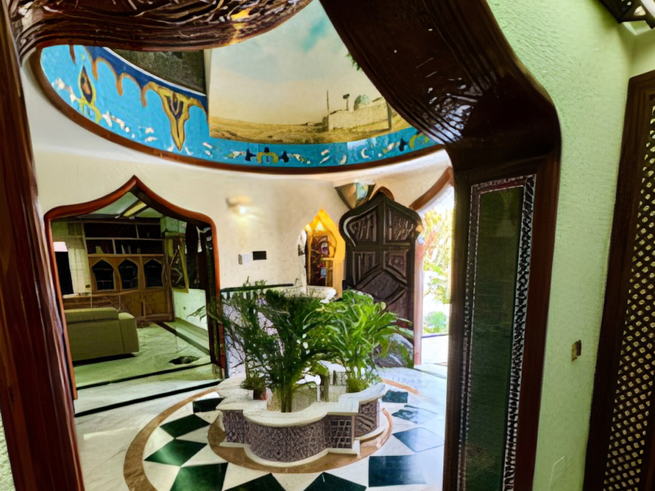 La Villa Árabe es un oasis de lujo inspirado en las Mil y Una Noches, situada junto al Paraje Natural de Punta Entinas-Sabinar y a tan solo 10 minutos de la playa. Su imponente cúpula azul es el centro visual de la villa, evocando la grandeza y la magia de los antiguos palacios árabes. Los interiores son igualmente impactantes, decorados con frescos originales del renombrado artista Waldi Wrobel, celosías iluminadas, y fuentes árabes interiores que añaden serenidad y elegancia a los espacios. Los suelos de mármol, arcos de madera tallada, azulejos andalusí y nazari, y carpintería de pino tea crean una atmósfera de lujo y exotismo. El dormitorio principal, con una cama de dosel y baño en suite, se abre a una gran terraza con vistas al jardín.