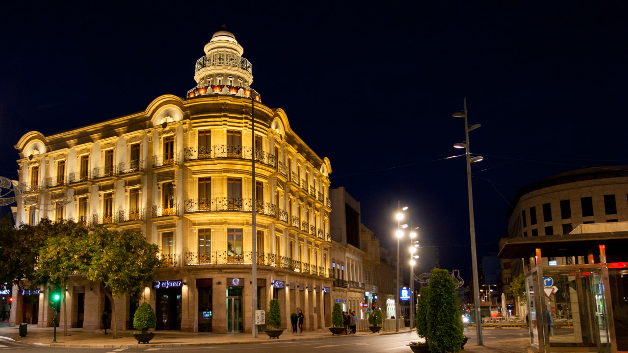 Junto a la Puerta Purchena de Almería en la zona alta del Paseo de la ciudad, se encuentra muy cerca de la Plaza de San Sebastian.